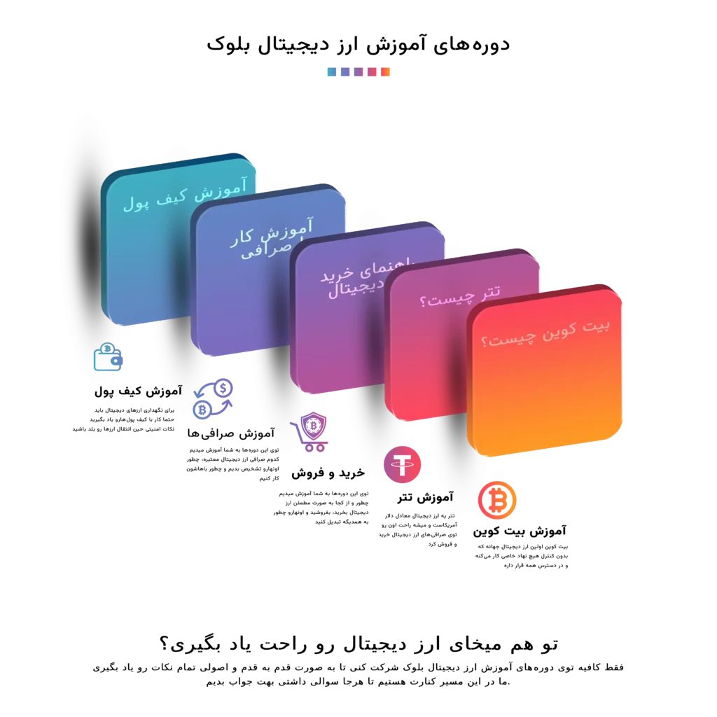 این دورهها برای یادگیری آسان و رایگان ارزهای دیجیتال به صورت درسهای جداگانه تهیه شدن تا بتونید خیلی راحت تمام مفاهیم بازار ارز دیجیتال رو یاد بگیرید و موضوعات مختلف رو آشنا بشید تا بتونید ارتباط اونها رو با هم درک کنید.